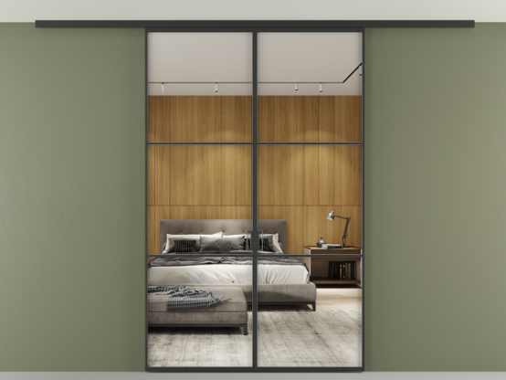 Во всех алюминиевых перегородках, независимо от типа установки, используется компланарный раздвижной механизм, благодаря которому декоративная крышка и полотно находятся в одной плоскости.