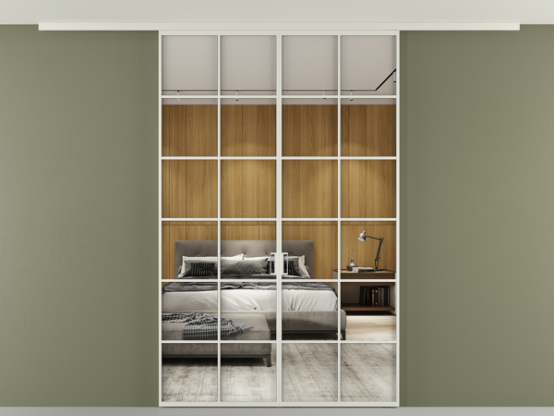 Во всех алюминиевых перегородках, независимо от типа установки, используется компланарный раздвижной механизм, благодаря которому декоративная крышка и полотно находятся в одной плоскости.