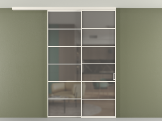 Во всех алюминиевых перегородках, независимо от типа установки, используется компланарный раздвижной механизм, благодаря которому декоративная крышка и полотно находятся в одной плоскости.