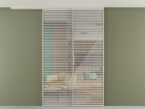 Во всех алюминиевых перегородках, независимо от типа установки, используется компланарный раздвижной механизм, благодаря которому декоративная крышка и полотно находятся в одной плоскости.
