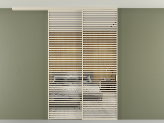 Во всех алюминиевых перегородках, независимо от типа установки, используется компланарный раздвижной механизм, благодаря которому декоративная крышка и полотно находятся в одной плоскости.